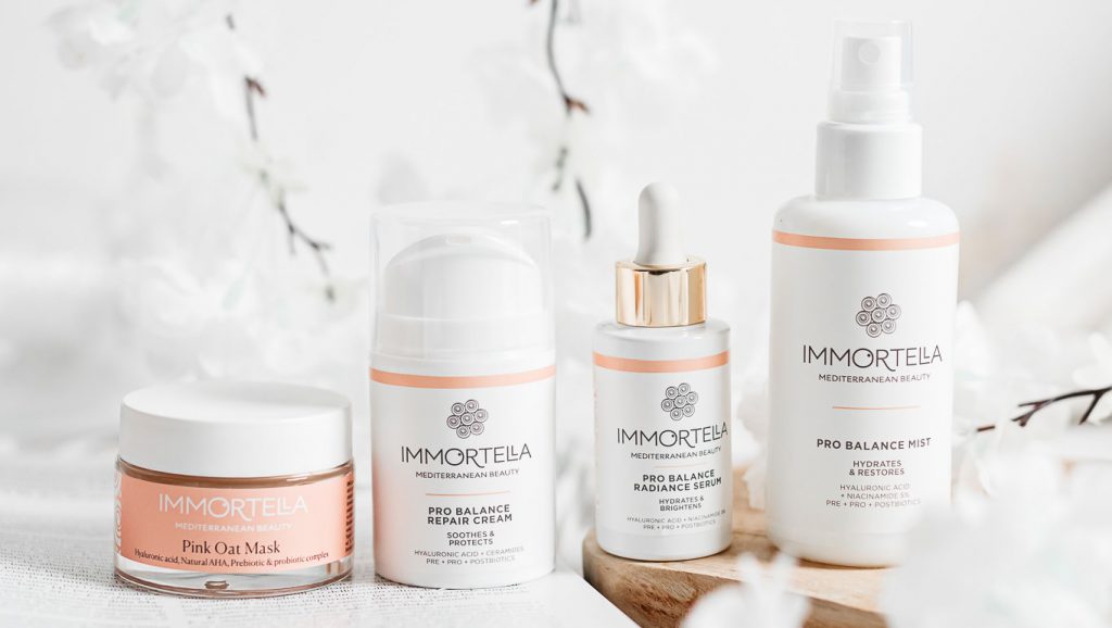 Svaki Immortella proizvod Pro balance linije sadrži patentirani kompleks prebiotika, probiotika i postbiotika koji umiruju, štite i jačaju mikrobiom kože, što Immortelu izdvaja kao jedini brend sa takvim formulacijama. Takođe, tu su i drugi sastojci poput niskomolekularne hijaluronske kiseline koja ima sposobnost dubinske hidratacije, niacinamida koji deluje protivupalno, posvetljuje ten i reguliše lučenje sebuma, ceramide (lipida) koji pomažu u zadržavanju vlage u koži, obnavljaju i štite kožnu barijeru, roze gline koja izvlači nečistoće, čisti i sužava pore, a sadrži prirodne minerale koji obogaćuju i hidriraju kožu i daju joj blistav izgled zbog blage eksfolijacije, i drugi.